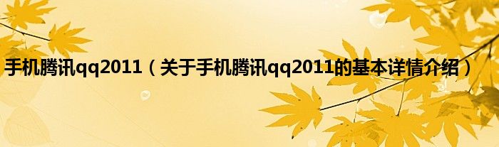 本文关于手机腾讯qq2011的基本详情介绍就讲解完毕,希望对大家有所帮助。