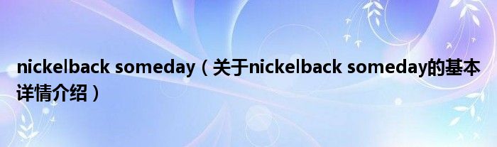 本文关于nickelback someday的基本详情介绍就讲解完毕,希望对大家有所帮助。