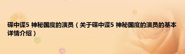 大家好我是小蝌蚪,碟中谍5 神秘国度的演员,关于碟中谍5 神秘国度的演员的基本详情介绍很多人还不知道,那么现在让我们一起来看看吧!