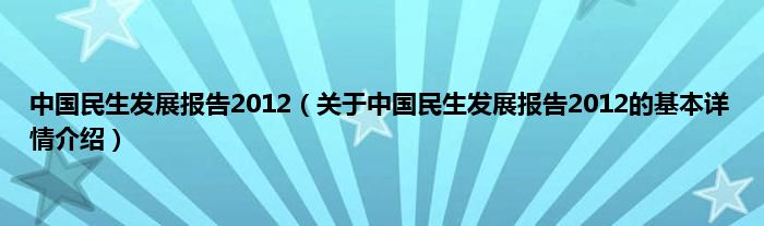 本文关于中国民生发展报告2012的基本详情介绍就讲解完毕,希望对大家有所帮助。