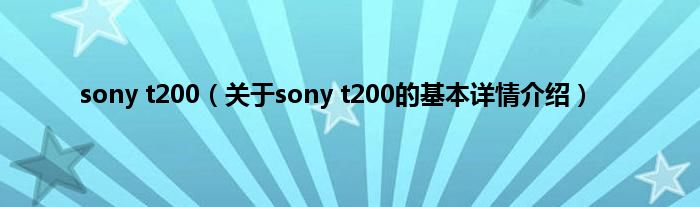 本文关于sony t200的基本详情介绍就讲解完毕,希望对大家有所帮助。