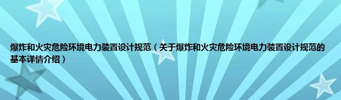 本文关于爆炸和火灾危险环境电力装置设计规范的基本详情介绍就讲解完毕,希望对大家有所帮助。