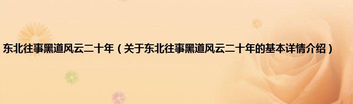 本文关于东北往事黑道风云二十年的基本详情介绍就讲解完毕,希望对大家有所帮助。