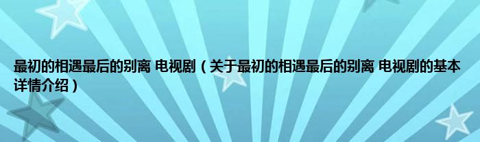 本文关于最初的相遇最后的别离 电视剧的基本详情介绍就讲解完毕,希望对大家有所帮助。