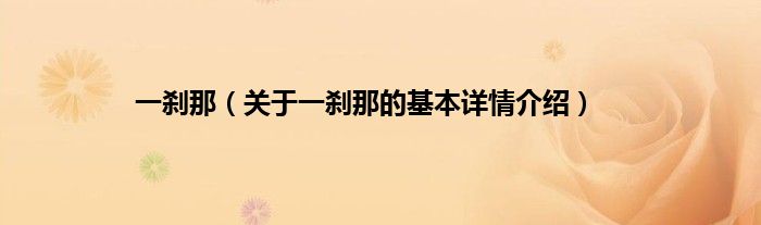 本文关于一刹那的基本详情介绍就讲解完毕,希望对大家有所帮助。