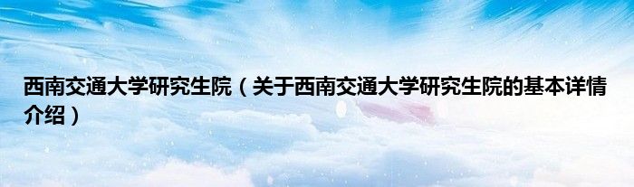 本文关于西南交通大学研究生院的基本详情介绍就讲解完毕,希望对大家有所帮助。