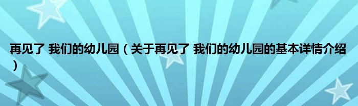 本文关于再见了 我们的幼儿园的基本详情介绍就讲解完毕,希望对大家有所帮助。