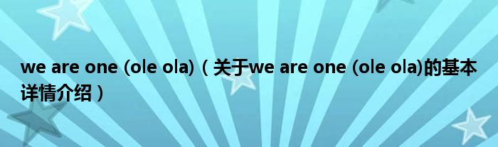 本文关于we are one (ole ola)的基本详情介绍就讲解完毕,希望对大家有所帮助。
