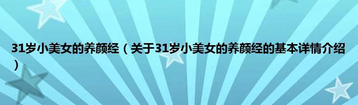 本文关于31岁小美女的养颜经的基本详情介绍就讲解完毕,希望对大家有所帮助。