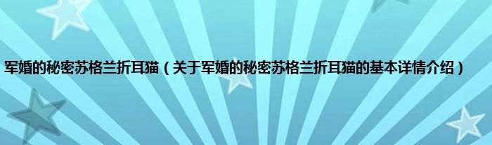本文关于军婚的秘密苏格兰折耳猫的基本详情介绍就讲解完毕,希望对大家有所帮助。