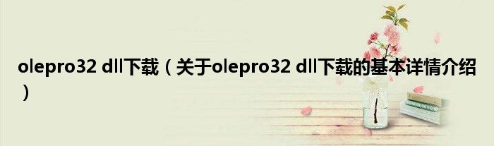 本文关于olepro32 dll下载的基本详情介绍就讲解完毕,希望对大家有所帮助。