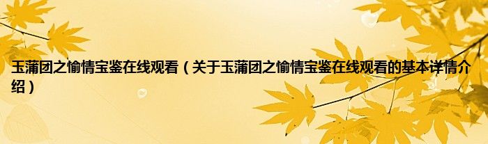 本文关于玉蒲团之愉情宝鉴在线观看的基本详情介绍就讲解完毕,希望对大家有所帮助。