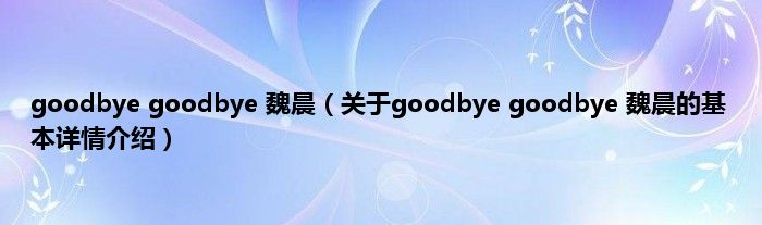 本文关于goodbye goodbye 魏晨的基本详情介绍就讲解完毕,希望对大家有所帮助。