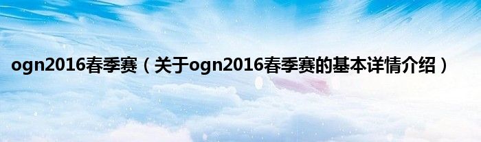本文关于ogn2016春季赛的基本详情介绍就讲解完毕,希望对大家有所帮助。