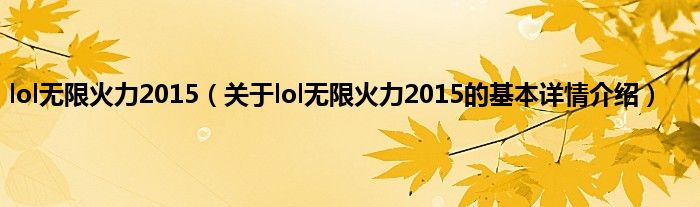 本文关于lol无限火力2015的基本详情介绍就讲解完毕,希望对大家有所帮助。