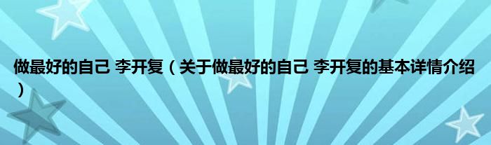 做最好的自己 李开复(关于做最好的自己 李开复的基本详情介绍)