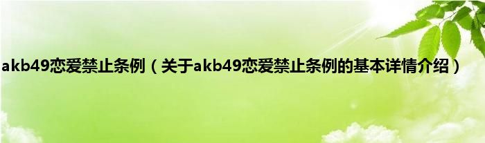 本文关于akb49恋爱禁止条例的基本详情介绍就讲解完毕,希望对大家有所帮助。