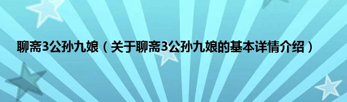 聊斋3公孙九娘(关于聊斋3公孙九娘的基本详情介绍)