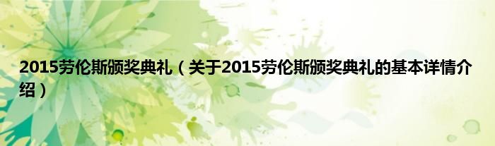 本文关于2015劳伦斯颁奖典礼的基本详情介绍就讲解完毕,希望对大家有所帮助。