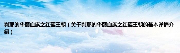 本文关于刹那的华丽血族之红莲王朝的基本详情介绍就讲解完毕,希望对大家有所帮助。
