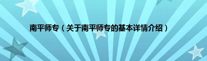 本文关于南平师专的基本详情介绍就讲解完毕,希望对大家有所帮助。