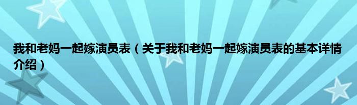 本文关于我和老妈一起嫁演员表的基本详情介绍就讲解完毕,希望对大家有所帮助。