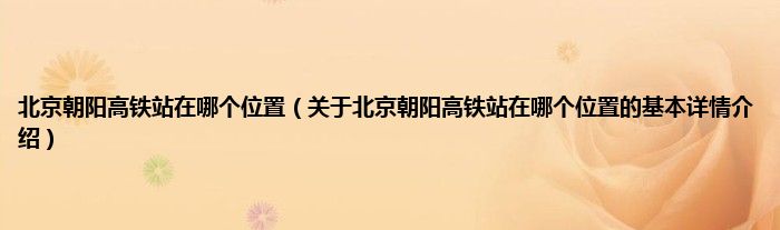 本文关于北京朝阳高铁站在哪个位置的基本详情介绍就讲解完毕,希望对大家有所帮助。
