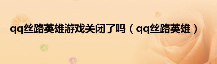 以上就是【qq丝路英雄游戏关闭了吗,qq丝路英雄】相关内容。