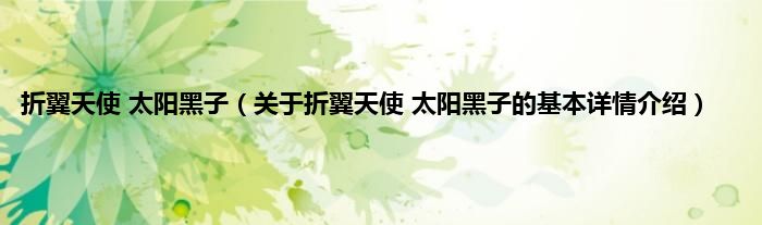 本文关于折翼天使 太阳黑子的基本详情介绍就讲解完毕,希望对大家有所帮助。