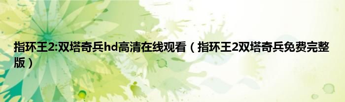大家好,小问来为大家解答以上问题。指环王2:双塔奇兵hd高清在线观看,指环王2双塔奇兵免费完整版这个很多人还不知道,现在让我们一起来看看吧!