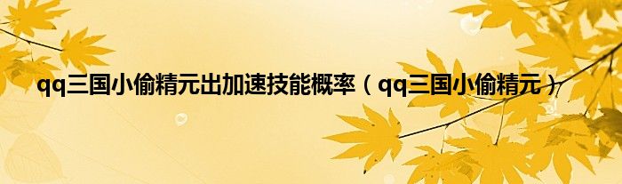 以上就是【qq三国小偷精元出加速技能概率,qq三国小偷精元】相关内容。
