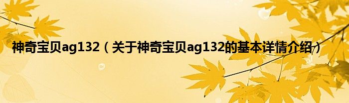 本文关于神奇宝贝ag132的基本详情介绍就讲解完毕,希望对大家有所帮助。
