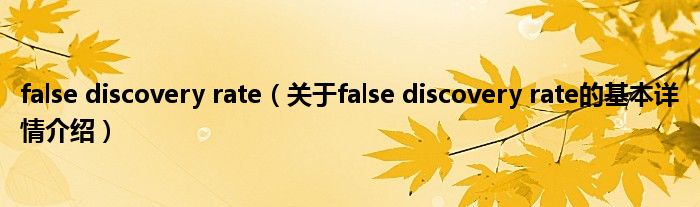 本文关于false discovery rate的基本详情介绍就讲解完毕,希望对大家有所帮助。
