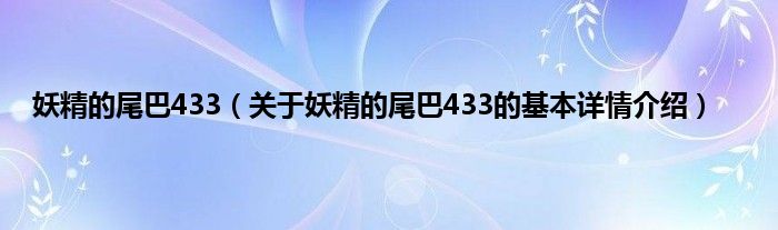 本文关于妖精的尾巴433的基本详情介绍就讲解完毕,希望对大家有所帮助。