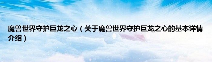 本文关于魔兽世界守护巨龙之心的基本详情介绍就讲解完毕,希望对大家有所帮助。