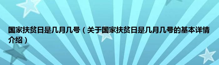 本文关于国家扶贫日是几月几号的基本详情介绍就讲解完毕,希望对大家有所帮助。