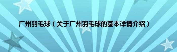 大家好我是小蝌蚪,广州羽毛球,关于广州羽毛球的基本详情介绍很多人还不知道,那么现在让我们一起来看看吧!