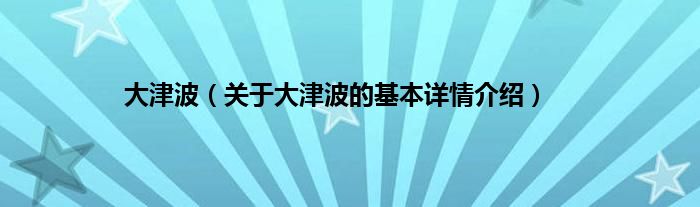 本文关于大津波的基本详情介绍就讲解完毕,希望对大家有所帮助。
