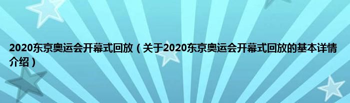 本文关于2020东京奥运会开幕式回放的基本详情介绍就讲解完毕,希望对大家有所帮助。