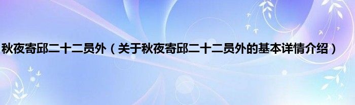 本文关于秋夜寄邱二十二员外的基本详情介绍就讲解完毕,希望对大家有所帮助。