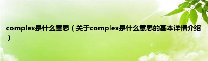 本文关于complex是什么意思的基本详情介绍就讲解完毕,希望对大家有所帮助。