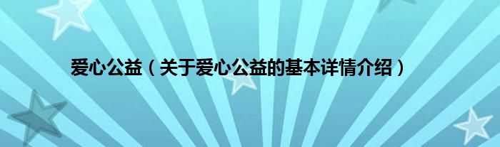 本文关于爱心公益的基本详情介绍就讲解完毕,希望对大家有所帮助。