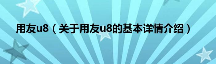 本文关于用友u8的基本详情介绍就讲解完毕,希望对大家有所帮助。