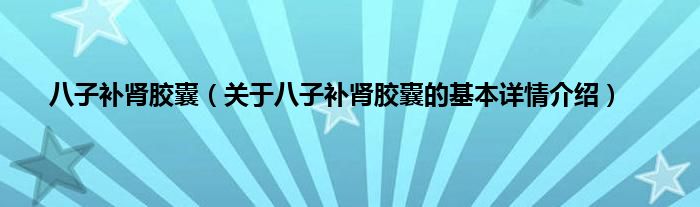 本文关于八子补肾胶囊的基本详情介绍就讲解完毕,希望对大家有所帮助。