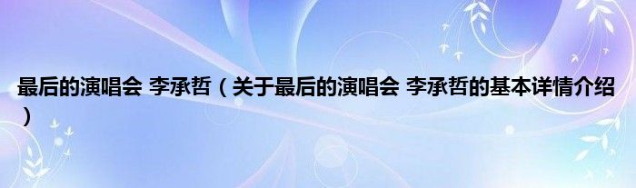 本文关于最后的演唱会 李承哲的基本详情介绍就讲解完毕,希望对大家有所帮助。