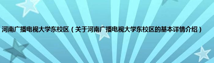 本文关于河南广播电视大学东校区的基本详情介绍就讲解完毕,希望对大家有所帮助。