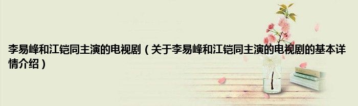 李易峰和江铠同主演的电视剧(关于李易峰和江铠同主演的电视剧的基本详情介绍)