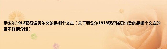 本文关于泰戈尔1913获得诺贝尔奖的是哪个文章的基本详情介绍就讲解完毕,希望对大家有所帮助。
