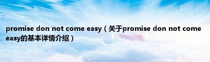 本文关于promise don not come easy的基本详情介绍就讲解完毕,希望对大家有所帮助。