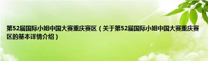 本文关于第52届国际小姐中国大赛重庆赛区的基本详情介绍就讲解完毕,希望对大家有所帮助。